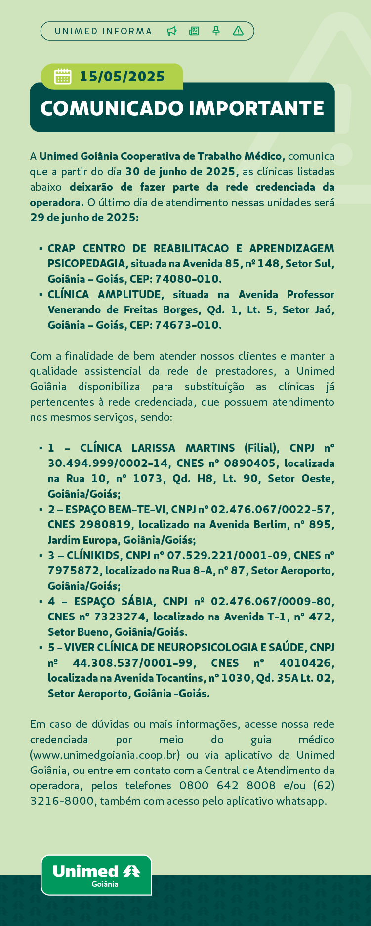 Comunicado Importante: Prestadores que serão descredenciados