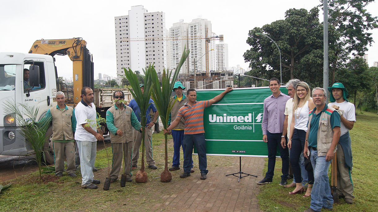 Assim, a Cooperativa fez uma parceria com a Agência Municipal do Meio Ambiente (AMMA) de Goiânia e doou 900 mudas de árvores. O plantio de 150 mudas de guariroba e 300 nativas já foi iniciado no Parque Cascavel.